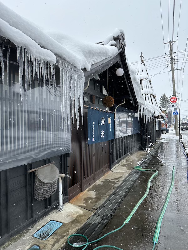 県内でも一番寒いと言われる米沢に蔵はあります。氷柱がなんとも言えない風情を感じました。朝の9時です。